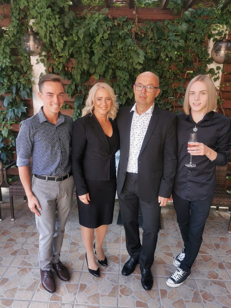 Na kaj sem v življenju ponosna? Na oba sinova, ki sta zrastla v odgovorna, uspešna človeka z veliko talenti, empatije in z delovnimi navadami. Starejši sin Jure je lansko leto dokončal doktorat iz bioloških znanosti in je zaposlen na Biotehniški fakulteti kot asistent, zelo je dejaven tudi izven tega, mlajši sin Luka končuje študij Biotehnologije na isti fakulteti, prav tako kot starejši je dejaven v študentskem svetu, kariero plesalca je sicer končal a se je posvetil učenju solo petja, kjer je prav tako izjemno uspešen. Lansko leto je bil izmed prijavljenih pevcev iz vsega sveta izbran v Eurochor med 50 pevcev in bil z njimi v Švici, kjer so imeli 4 koncerte. Že 30 let sem poročena z Alešem, ki nas podpira v vsem in nam pomaga. Brez njega ne bi uspela čez to težko obdobje. V tem času mi je odpadlo veliko »prijateljev«, a še več jih je prišlo na novo. Te sedaj izjemno cenim.