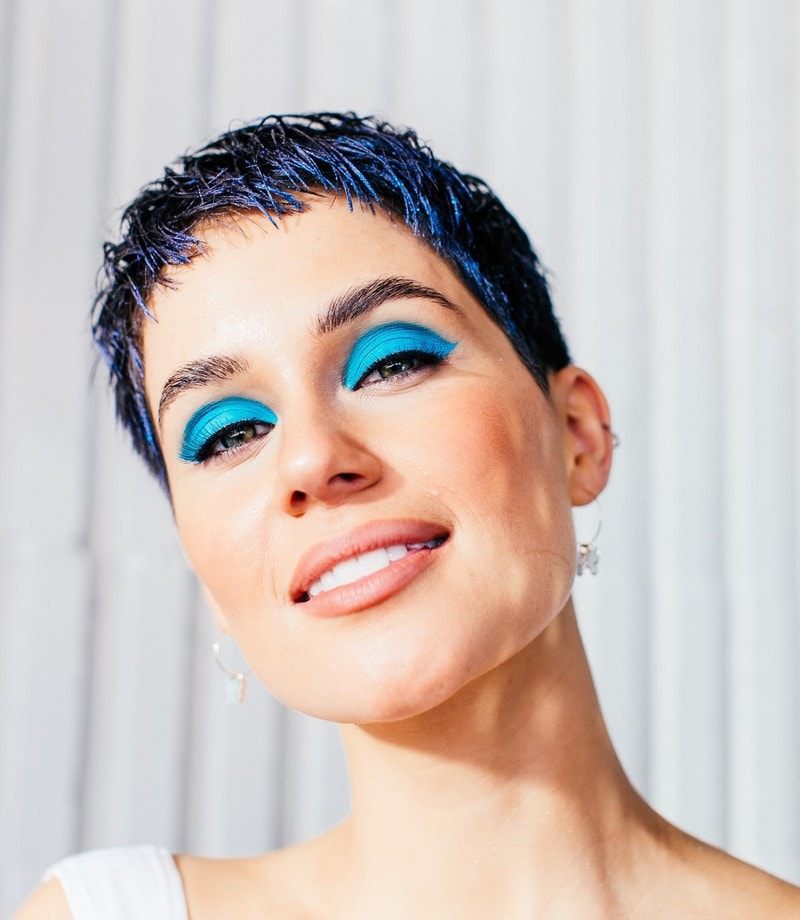 - Kratka pixie frizura poudari ličnice in oči in lepo uravnoteži okrogel obraz, za razgiban videz pa poskrbi preča na različnih straneh.